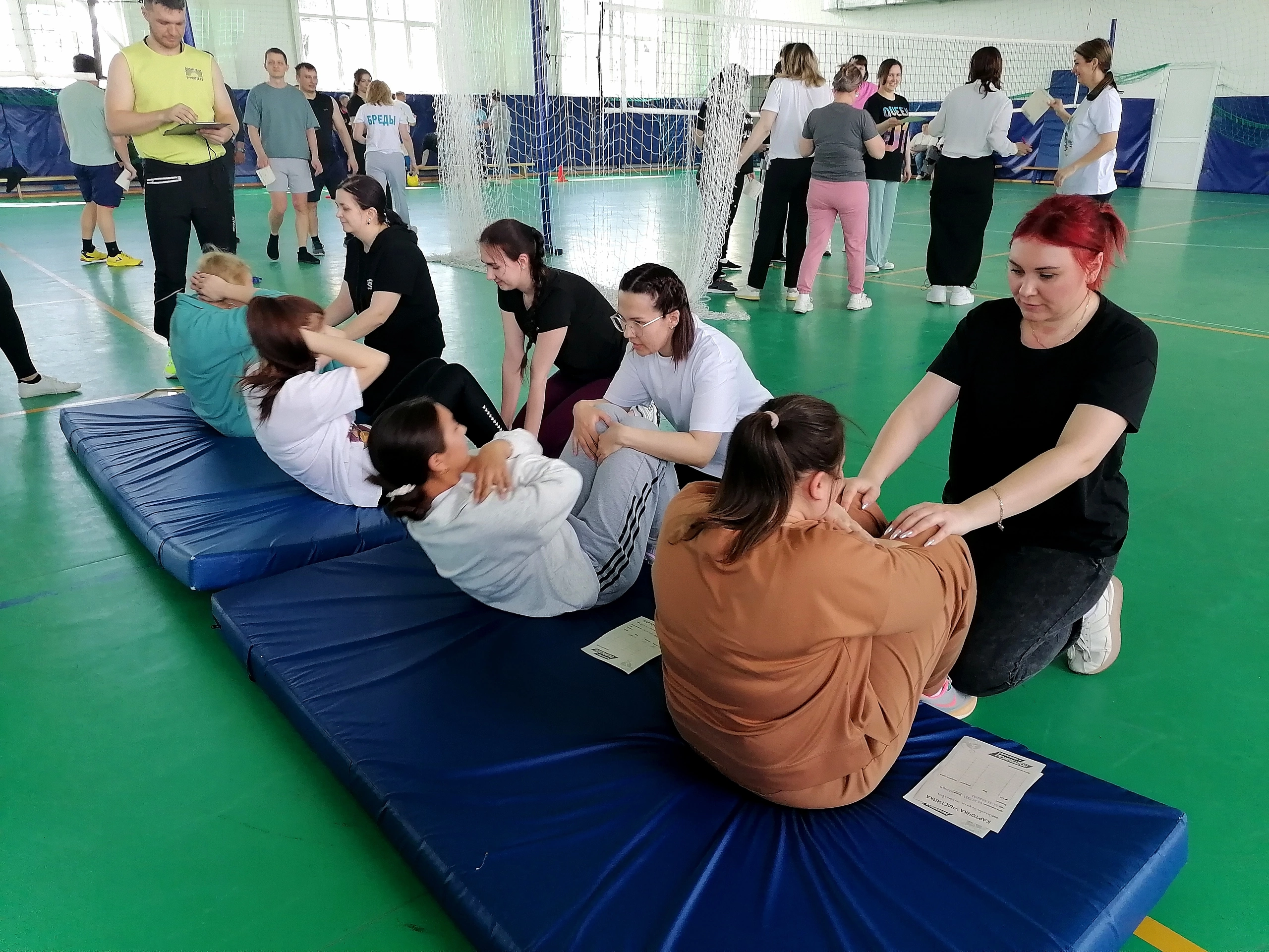 В теплой и дружеской обстановке сотрудники выполняли обязательные испытания и испытания по выбору. Нормативы включали ряд упражнений, таких как прыжок в длину с места, поднимание туловища (пресс), наклон на гимнастической скамье, подтягивания и отжимания.
