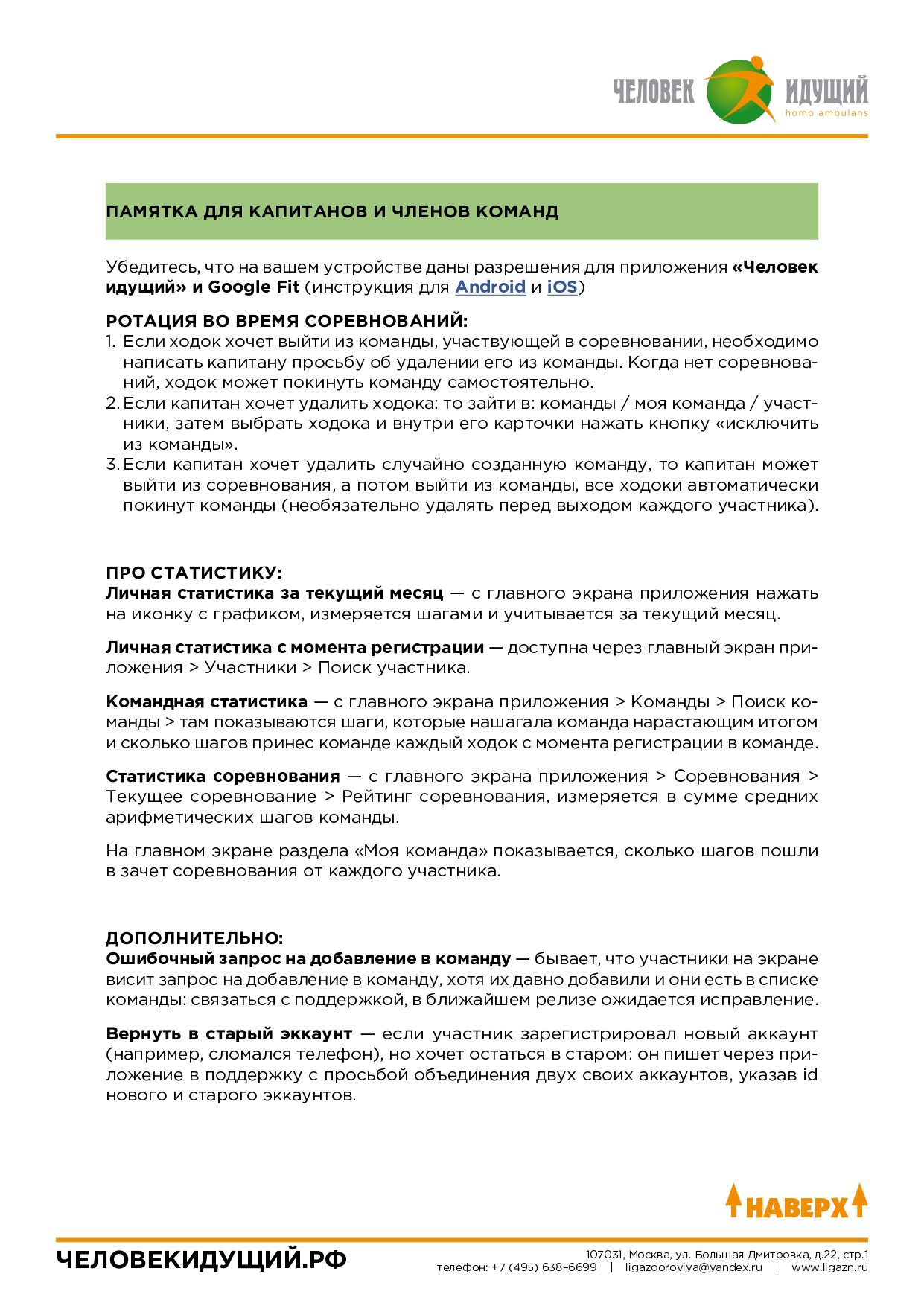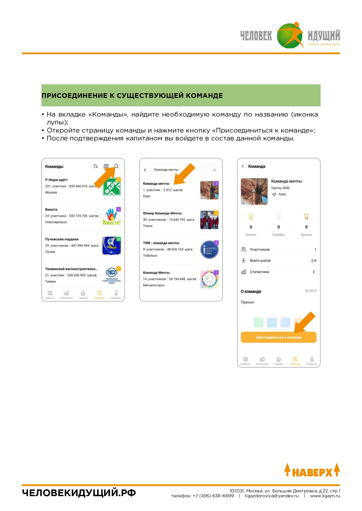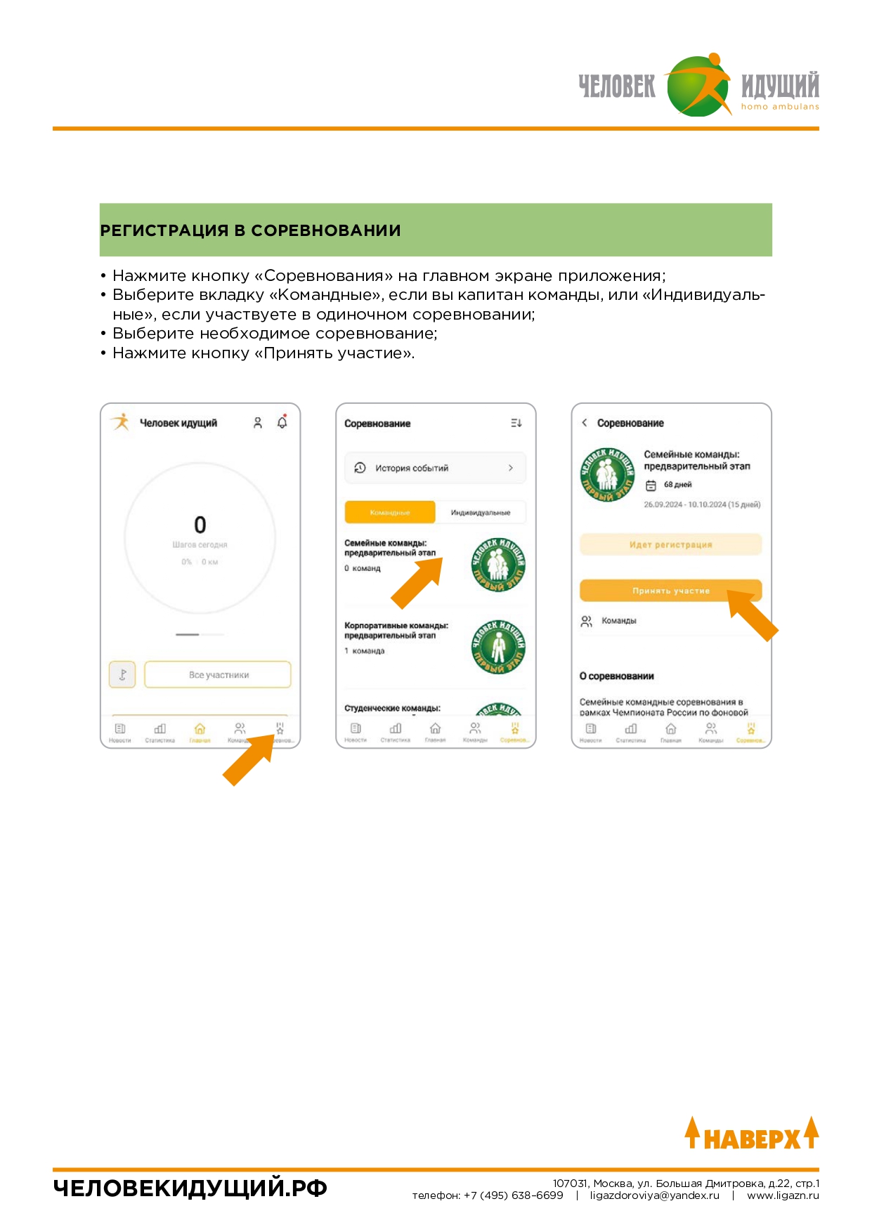 В рамках реализации Проекта «Человек идущий» в 2025 году предполагается проведение Всероссийских командных соревнований по фоновой ходьбе (все шаги человека за день) среди муниципальных, корпоративных, студенческих и семейных команд, а также команд пенсионеров и неформальных объединений граждан (групп ЗОЖ) с использованием мобильного приложения по подсчёту шагов.